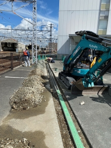 JR豊橋駅構内にてトラフ(電線を通すU字溝)設置工事しました